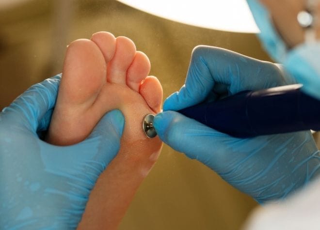 Ayak tabanında veya topukta oluşan kalınlaşmalar cihaz yardımıyla inceltilir, pürüzsüz ve konforlu bir görünüm kazandırılır.